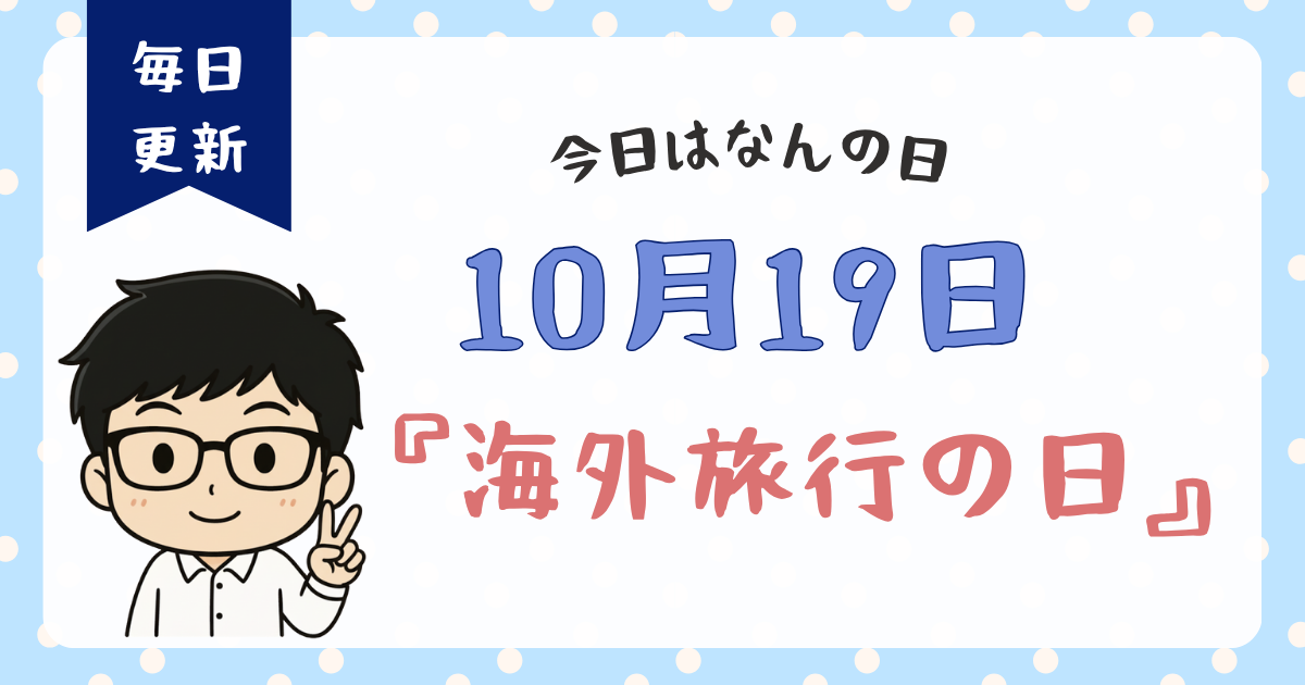 10月19日と聞くと、皆さんは何を思い浮かべますか。実はこの日、旅好きにはたまらない、ワクワクする記念日なんです。私が特に注目しているのは、この日が『海外旅行の日』とされている点です。