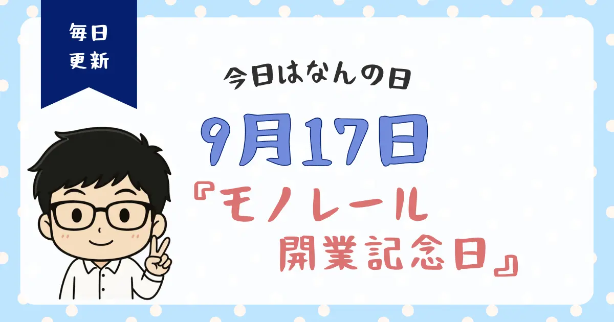 9月17日は「モノレール開業記念日」です。これは、1964年のこの日に、日本初の旅客用モノレールである東京モノレール(浜松町駅~旧羽田駅間)が開業したことに由来します。