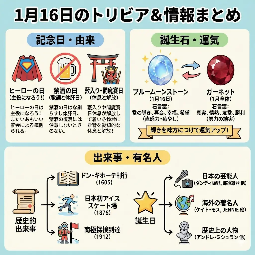 1月16日は、ただのカレンダー上の数字ではありません。歴史的な背景を持つ厳粛な行事から、現代生まれのユニークな記念日まで、多彩な顔を持つ特別な一日です。