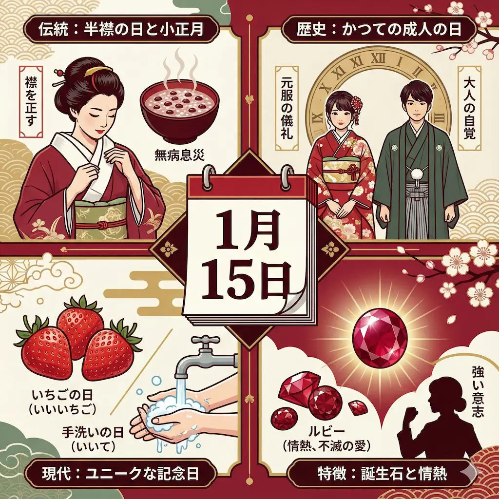 この記事では、1月15日の由来や記念日、誕生石や有名人について詳しく解説します。