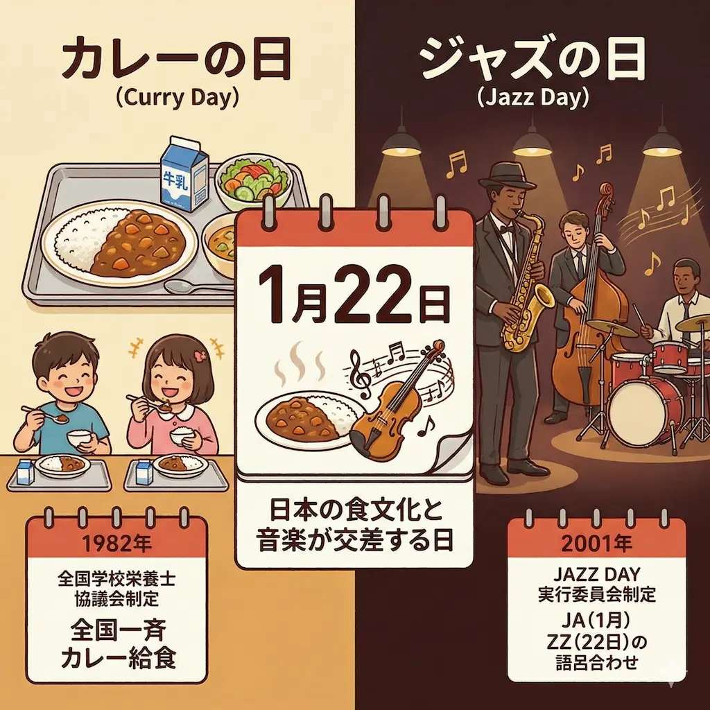 この日は、日本の文化に深く根付いた二つの記念日があります。一つは食卓を彩る「カレーの日」、もう一つは心を彩る「ジャズの日」です。