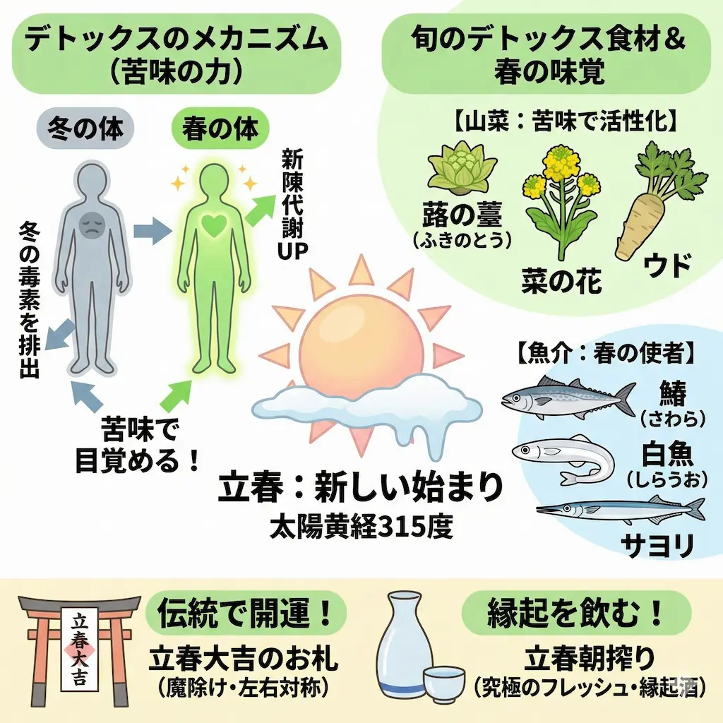 二十四節気の起点である「立春」は、新しい1年の始まりを告げる大切な節目にあたります。この記事では、立春に向けた準備や、体を整えるための旬の食材を詳しく紹介します🌸