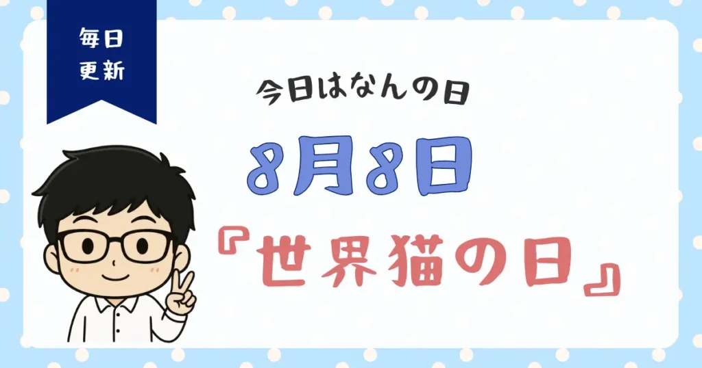 8月8日が何の日かご存じですか。この日は、世界中の猫好きが注目するとても大切な日です。私が特に注目しているのは、動物愛護の精神に基づいた国際的な記念日である点です。 この記事では、8月8日の中心的な記念日である「世界猫の日」について詳しく解説... -