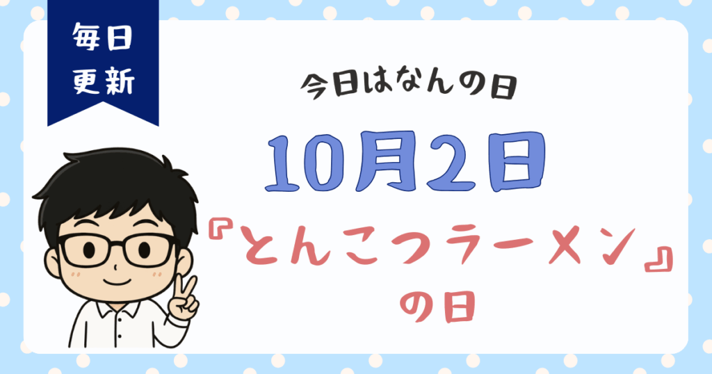 10月2日と聞いて、皆さんは何を思い浮かべるでしょうか。実はこの日、驚くほどたくさんの記念日が制定されています。その中でも、私が特に注目したいのが「とんこつラーメンの日」です。 こってりとした旨味がたまらないとんこつラーメンは、多くのラーメ... -