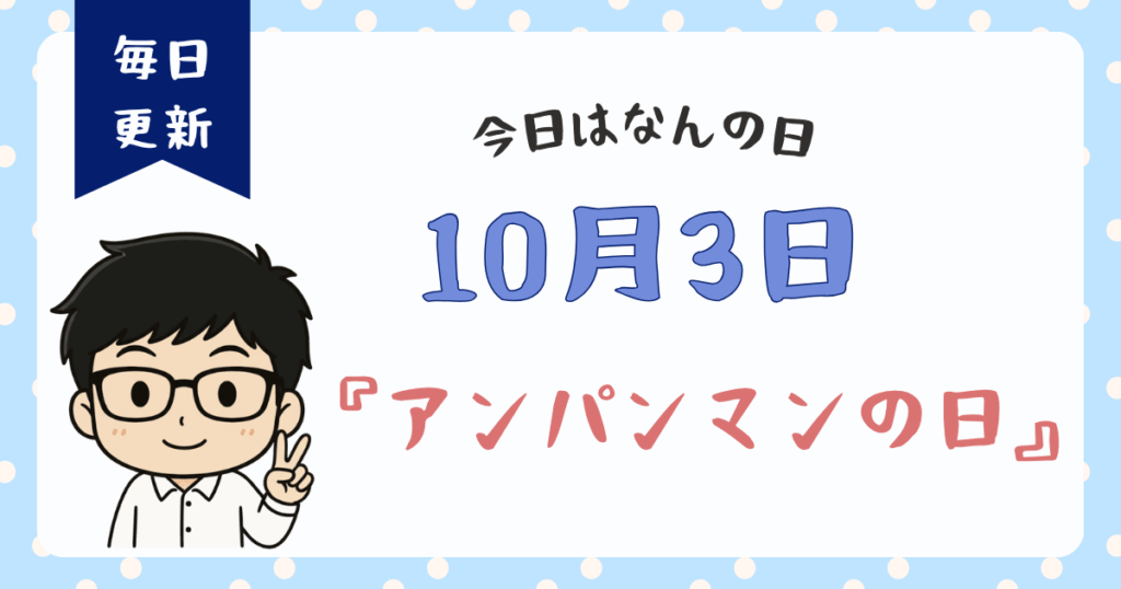 10月3日と聞いて、あなたは何を思い浮かべるでしょうか。実はこの一日には、歴史を動かした出来事から、私たちの生活に身近な記念日まで、実に様々な意味が込められています。 その中でも、私が特に心惹かれるのが「アンパンマンの日」です。多くの子ども... -